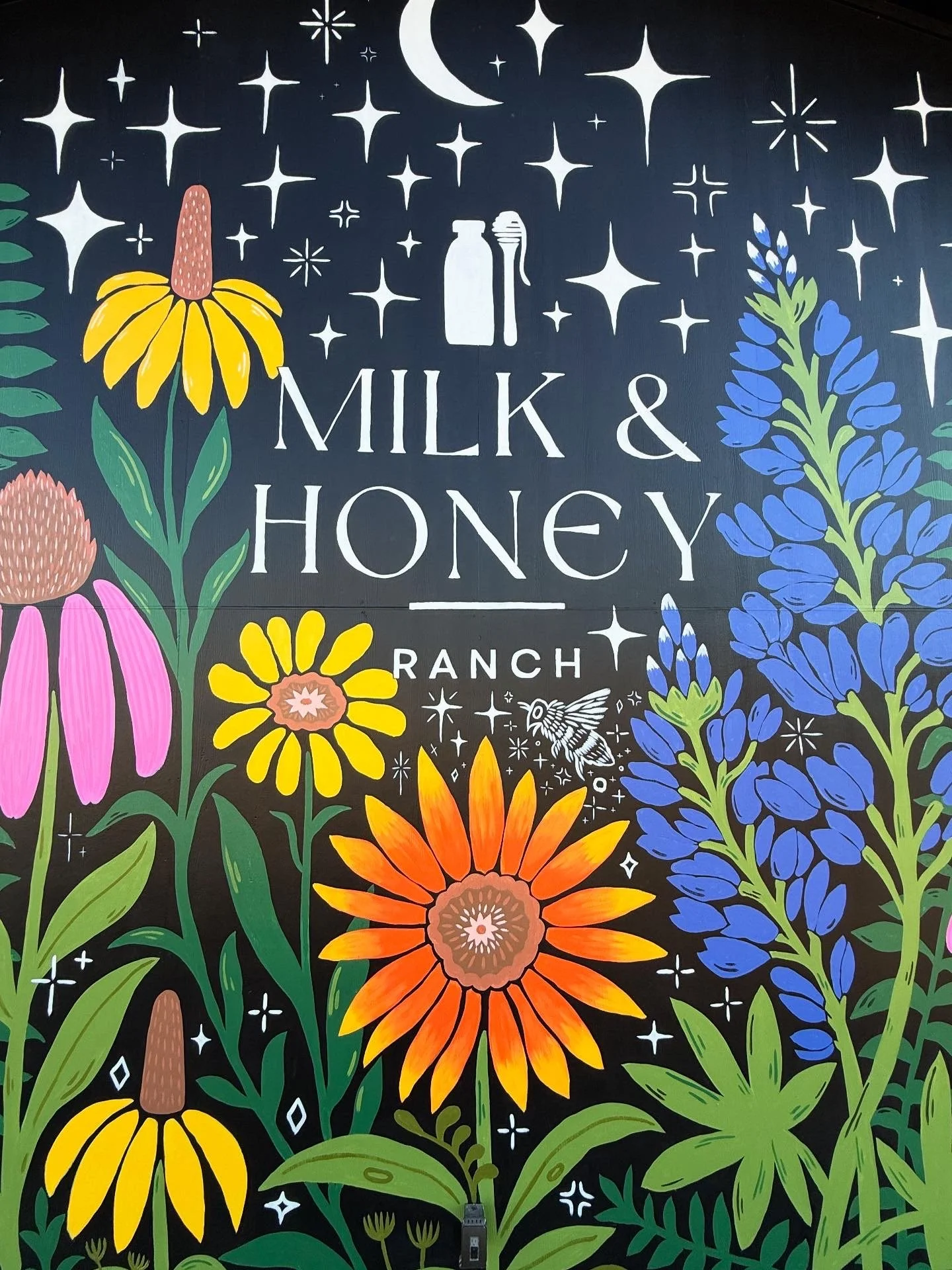 It all started with a DM. I reached out to this beautiful ranch I found on instagram 6 months ago because I felt called to shoot my shot to see if they would like a mural. They just recently reached out and said they were building a new building and wanted me to come do a mural on the front of it. This wall they wanted painted was very large and would be seen by everyone who entered the ranch first thing.